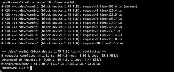 ioping -c 10 /dev/nvme0n1