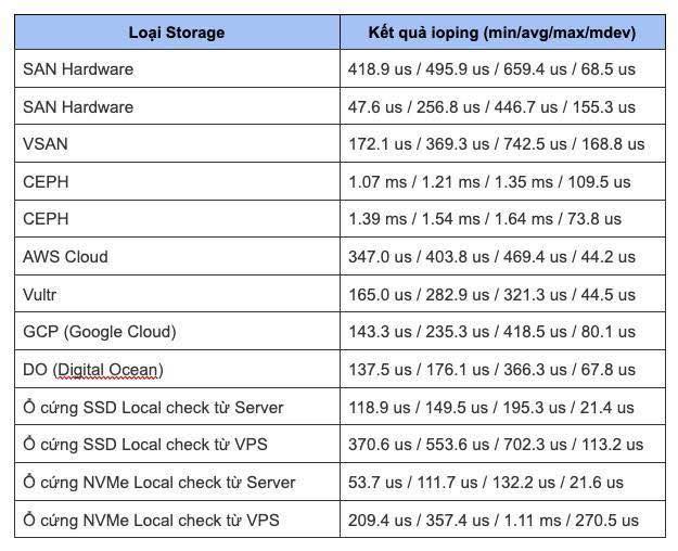 Dựa vào con số avg, bạn có thể ước đoán được loại storage mà nhà cung cấp đang dùng: